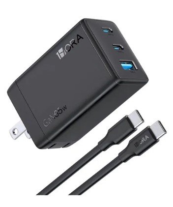 Cargador 65W PD para Pared 1Hora 3 Puertos + Cable Tipo-c Carga Rápida Portátil Compatible con Samsung Galaxy S23 Ultra Motorola Edge Xiaomi 11 Pro